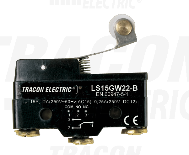 - Spínač LS15GW22-B koncový so skrátenou pákou a kladkou, 1 prepínací kontakt LS15GW22-B