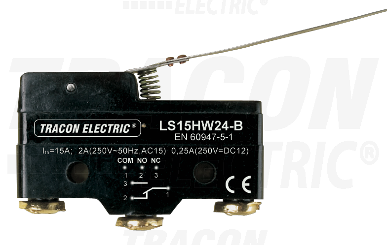 - Spínač LS15HW24-B koncový s predĺženou pákou, 1 prepínací kontakt LS15HW24-B