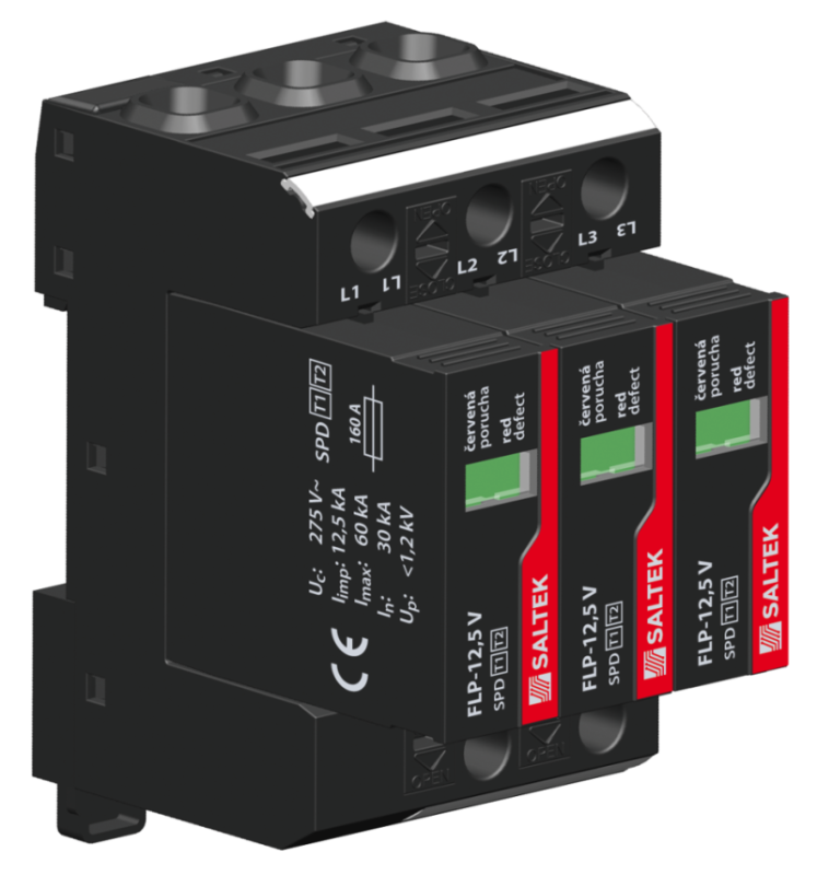 - Zvodič FLP-12,5 V/3 "B+C" 37,5 kA(10/350)/3 póly, 180 kA (8/20)/3 póly, T1+T2, vyb.varistor 8595090534259