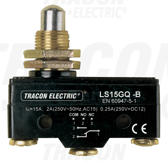 - Spínač LS15GQ-B s kovovým čapom, montáž do panelu, 1×CO, 15A/250V AC, IP00 LS15GQ-B
