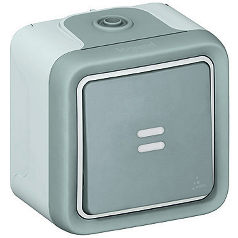 - Spínač PLEXO IK07 , č.6 so sign. sv. IP55 striedavý sivý + krabica (komplet) 069710