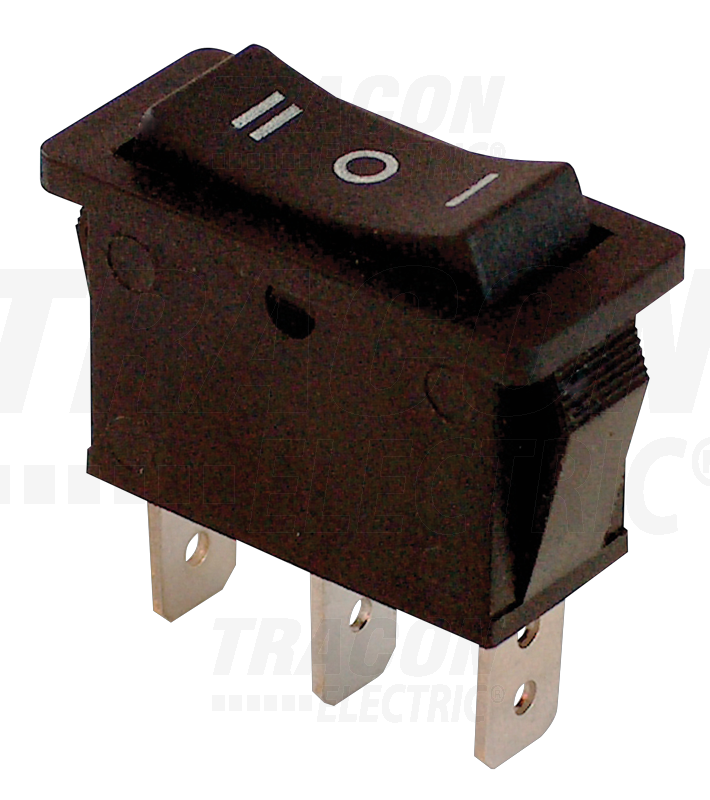 - Spínač TES-12 kolískový 3-polohový, čierny, s popisom I-0-II, 250VAC, 16(6)A TES-12