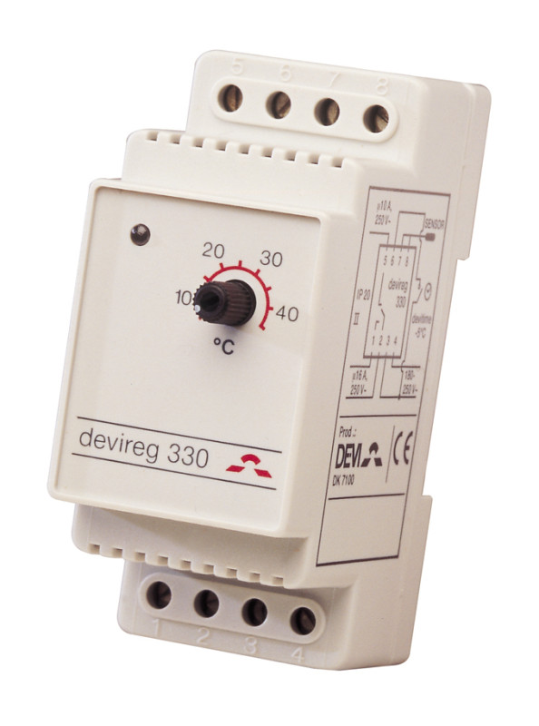 - Termostat Devireg 330, +5 °C až +45 °C, s káblovým snímačom, na DIN lištu 140F1072